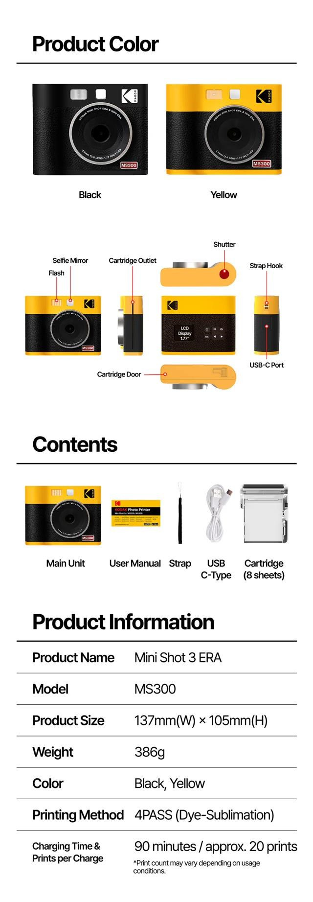 Popis KODAK instantní fotoaparát Cam Mini Shot 3 Era