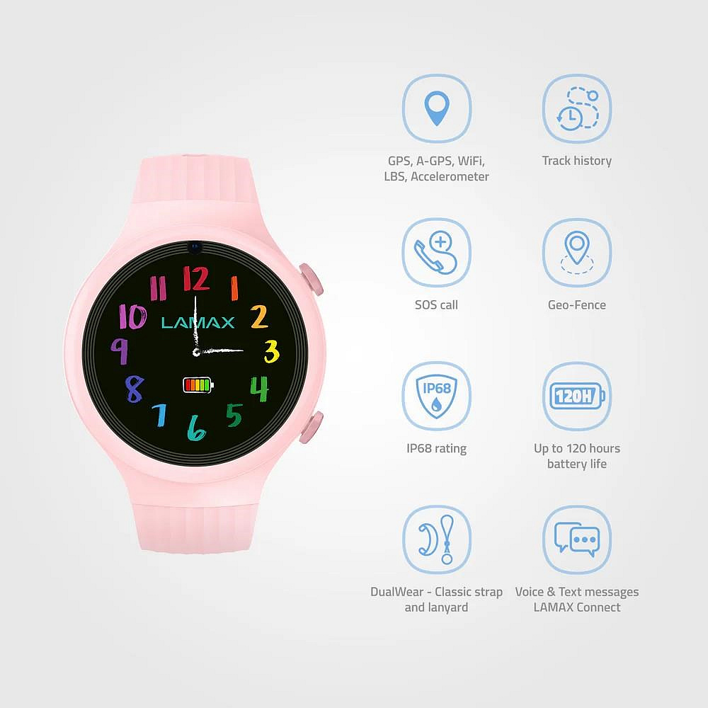 LAMAX WatchY4 Sport zvládnou i ten nejaktivnější dětský den od školy, přes kroužky, až po venkovní dobrodružství. Jsou vyrobené z bezpečných hypoalergenních materiálů, odolné vůči dešti a vydrží až 120 hodin na jedno nabití. Díky DualWear® designu si je děti mohou vzít na ruku nebo zavěsit třeba na batoh podle toho, co jim vyhovuje. Režim ztracených hodinek hodinky během chvilky uzamkne a po nalezení je jednoduše odemknete pomocí bezpečnostního kódu.