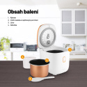 Ryžovar je dizajnový klenot, ktorý ozdobí každú kuchyňu vďaka použitiu trendy farby rose gold. Aj keď vyniká, na linke príliš miesta nezaberie a oplatí sa tiež energeticky. Skvele sa hodí na prípravu pokrmov pre jednotlivcov či páry. Jednoduchá je nielen príprava jedla, ale aj údržba, keď stačí prémiový vnútorný hrniec s nepriľnavým povrchom vložiť do umývačky. Zostane vám tak čas na koníčky alebo partnera. V balení nájdete aj odmerku a lyžicu pre pohodlné odmeranie ingrediencií.