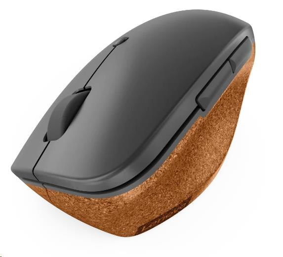 Bezdrôtová vertikálna myš Lenovo Go je riešenie vyrobené z ekologického korku, ktoré poskytuje maximálne pohodlie a úchop pre vašu dlaň, palec a prsty. Vďaka povrchu odolnému proti rozliatiu UV žiarenia sa aj ľahko čistí.
