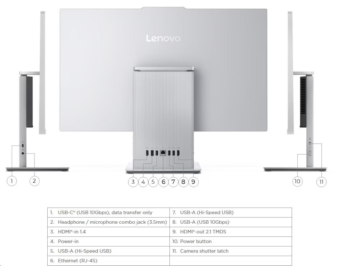 | Standartné porty | 1x USB-A (USB 10Gbps / USB 3.2 Gen 2) 2x USB-A (Hi-Speed USB / USB 2.0) 1x HDMI®-in 1.4 1x HDMI®-out 2.1 TMDS 1x Ethernet (RJ-45) 1x power connector |