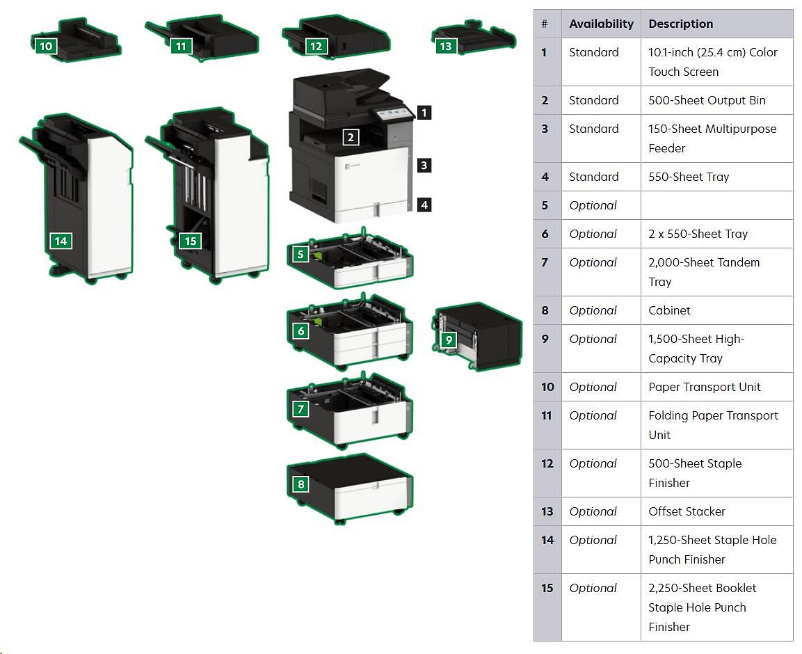 Automatické obojstranné skenovanie, Farebná tlač, Oddelené náplne