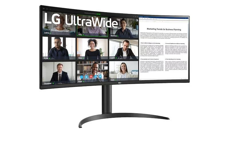 UltraWide™ QHD (3440 × 1440) s zakrivením 1800R a pomerom strán 21:9 je skvelý na prácu, pretože umožňuje zobraziť viac programov naraz.