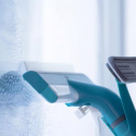 Integrovaná nádržka dopraví čistiaci prostriedok presne tam, kde je potrebné. Mimoriadne mäkký, pratelný čistiaci návlek odstráni nečistoty dôkladne – aj na citlivých povrchoch, ako sú zrkadlové skrinky, sklenné plochy či sprchové zásteny. Potom sa postará kvalitná gumová lišta o lesk bez šmúh, zatiaľ čo špinavá voda odtečie do zbernej nádržky – bez kvapiek na podlahe.