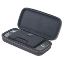 Akčné ponuky na váš e-mailV tomto luxusnom cestovnom puzdre s motívom závodnej hry Mario Kart World môžete bezpečne a pohodlne prenášať nielen novú hernú konzolu Nintendo Switch 2, ale tiež hernú konzolu Nintendo Switch alebo Switch – OLED Model. Ústredným prvkom tohto puzdra je nastaviteľný stojan, ktorý pri hraní umožňuje pohodlnejšie sledovať dianie na obrazovke, zatiaľ čo pri preprave chráni obrazovku aj analogové páčky konzoly pred poškodením. Na jeho vnútorej strane sa navyše nachádza dvanásť kapsičiek na uloženie kariet s vašimi obľúbenými hrami. Súčasťou balenia sú aj dve menšie plastové puzdrá pre microSD karty.
