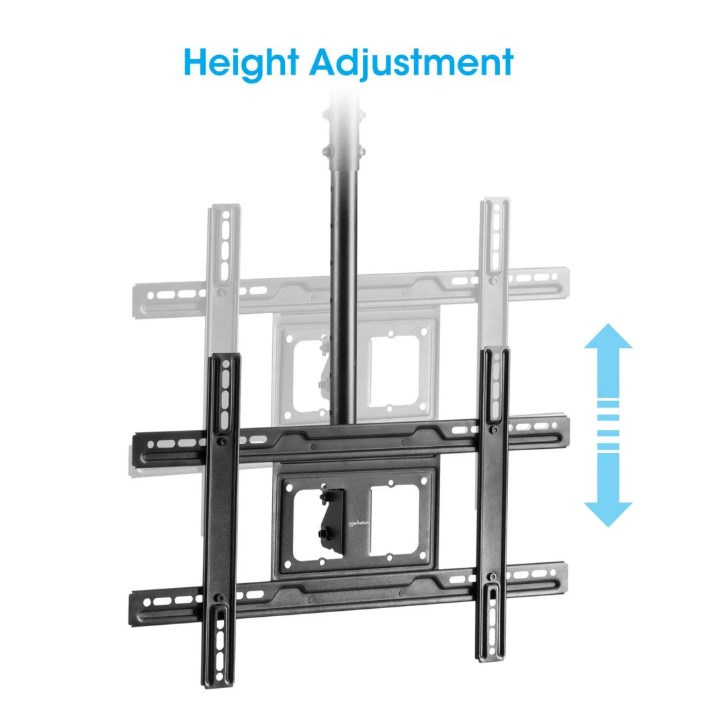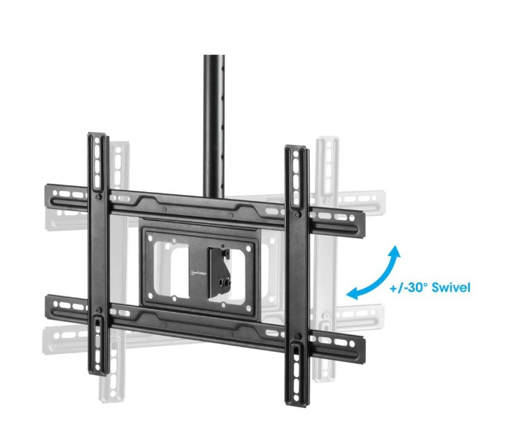 Akčné ponuky na váš e-mailZlepšite uhol pohľadu, keď je miesto na stene a podlahe obmedzené alebo nie je možné inštalovať televízor nízko nad podlahou. Tento stropný držiak na televízor Manhattan pojme LCD, LED alebo plazmový displej s uhlopriečkou 37" až 80" a hmotnosťou až 50 kg. Jeho práškovo lakovaná, odolná oceľová konštrukcia zabezpečuje bezpečnú a spoľahlivú inštaláciu nad hlavou.