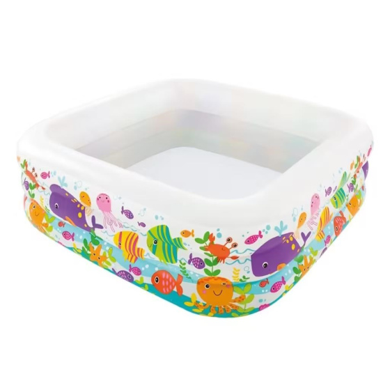 Akčné ponuky na váš e-mailS nafukovacím bazénom Aquarium si deti od 3 rokov užijú veľa zábavy. Má štvorcový tvar, príjemnú modrú farbu, ktorá navodzuje efekt farby vody v oceáne.