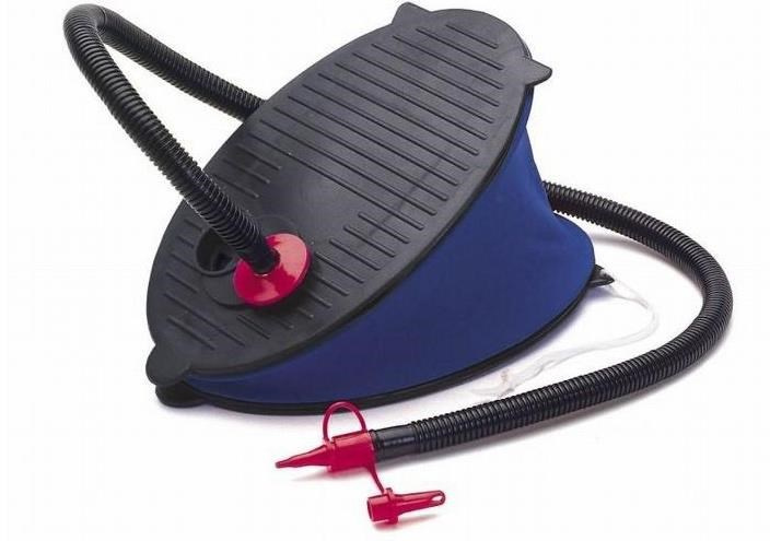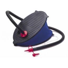 Nožná vzduchová pumpa. Režim nafukovania/vyfukovania. Súčasťou pumpičky je hadica s tromi rôznymi nadstavcami na nafukovanie.
