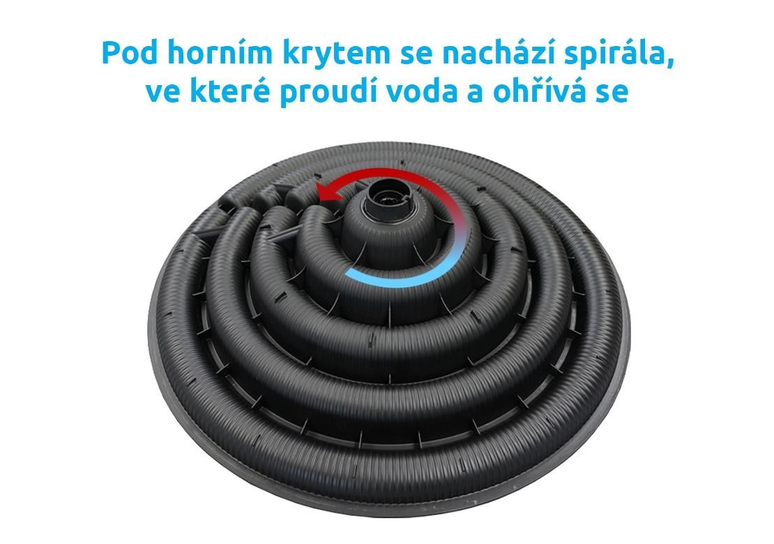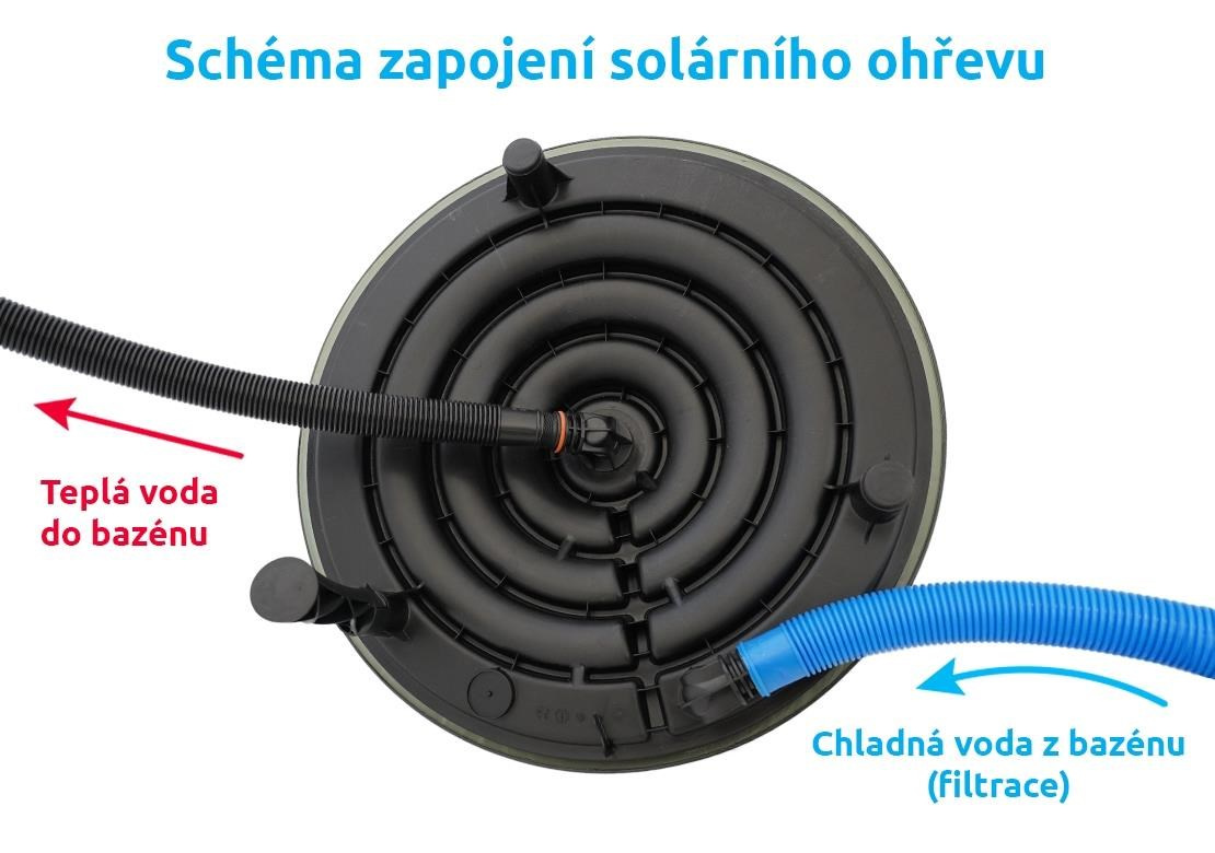 Súčasťou balenia je solárny ohrev, vrchný plastový kryt a trny na pripojenie 32 a 38 mm hadíc.