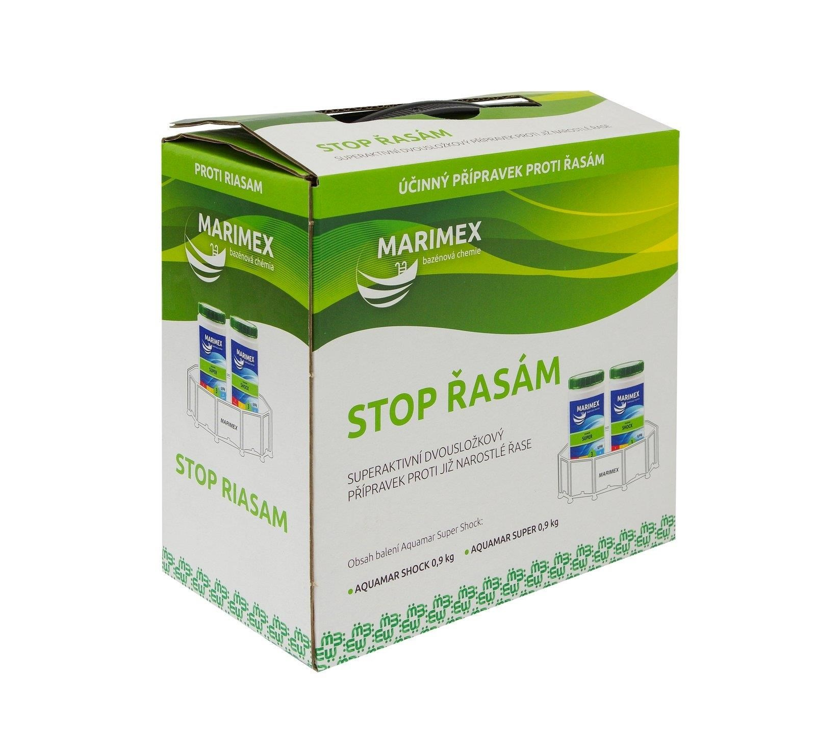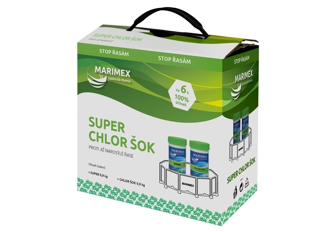 Akčné ponuky na váš e-mailMarimex Super Chlor Šok je superaktívny dvojzložkový prostriedok proti už narastené rase. Tento prípravok odstráni aj čiernu rasu. Bublinky stúpajúce k hladine strhávajú a nabalujú rasy na seba a vynášajú ich s sebou na hladinu. Zneškodnené rasy z hladiny odstráni skimmer.