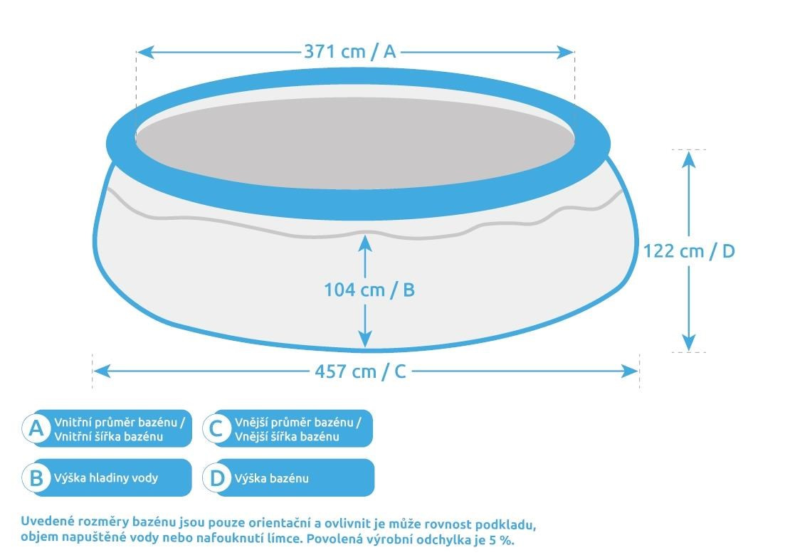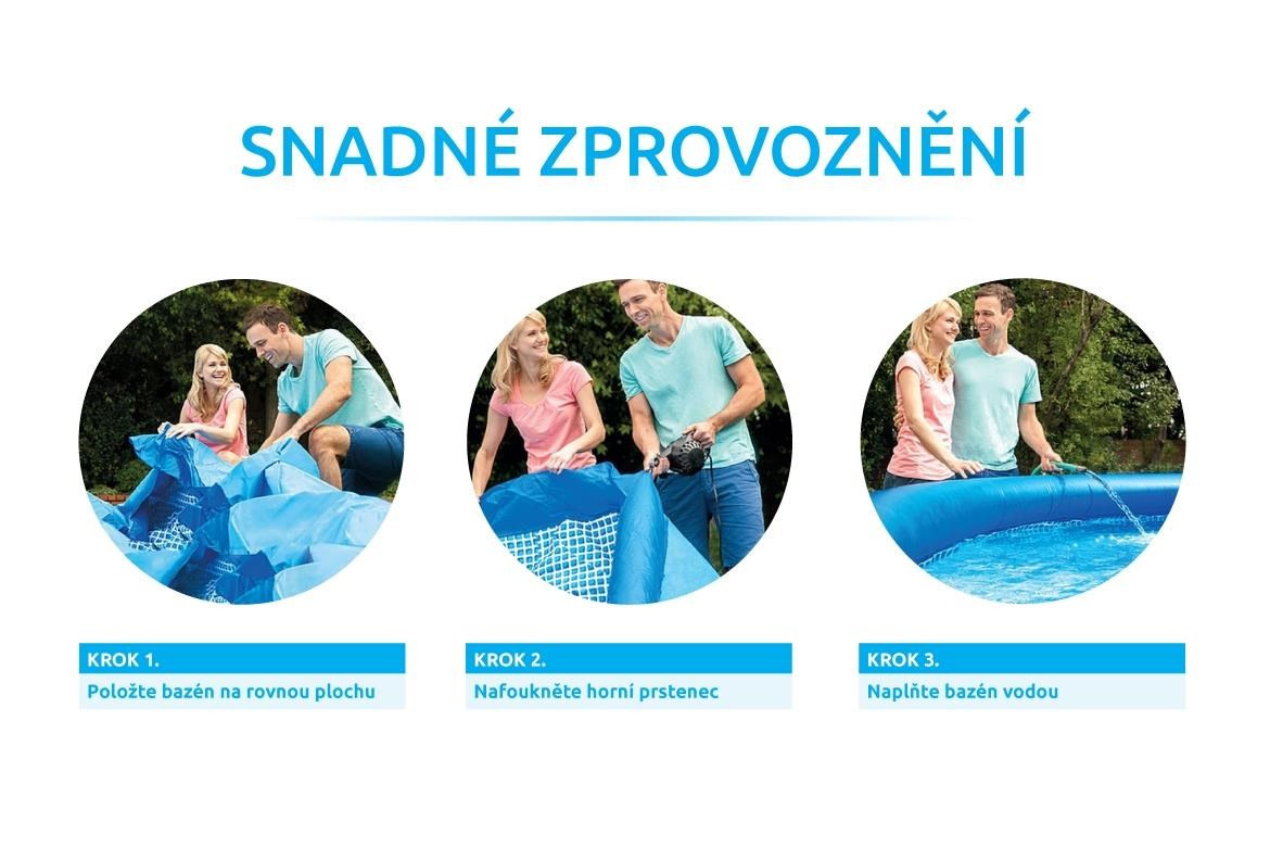 Akčné ponuky na váš e-mailBazén Tampa patrí medzi najpredávanejšie a najobľúbenejšie bazény v Českej republike. Kúpanie vo vlastnom bazéne si môže dopriať naozaj každý. Tento konkrétny model poskytne veľký kúpaliskový priestor. Prednosťou bazéna Tampa je nízka cena, jednoduchá údržba a rýchle zprovoznení. Stačí len pripraviť miesto na bazén, rozvinúť bazénovú podložku, bazén rozbaliť, nafúknuť horný límec a začať napúšťať vodu. Stúpajúca voda sama bazén postaví. Od vybalenia bazéna môžete do 30 minút napúšťať vodu. Bazén je nutné po skončení bazénovej sezóny vyčistiť, vypustiť a uložiť na suché, mrazuvzdorné miesto. Správnou údržbou predĺžite životnosť bazéna. Pre jednoduché nafúknutie odporúčame zakúpiť ručnú alebo elektrickú pumpu.