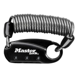 60 mm široká karabína s pevnou sťahovacou šnúrou dĺžky 90 cm. Jej konštrukcia z kovu je ľahká a ľahko prenosná. Kovová spona o priemere 3 mm je vhodná pre väčšinu zipsov. Obsahuje 3-miestny resetovateľný kombinovaný zámok. Odporúčame na ochranu batožiny, sedadiel a prilieb.