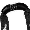 Akčné ponuky na váš e-mailPosilnený oceľový reťaz s integrovaným kombinovaným zámkom je 90 cm dlhý a obsahuje oceľové spojky s priemerom 8 mm, ktoré odolávajú rezaniu. Nylonový kryt reťaze zabraňuje poškriabaniu. Zámok obsahuje resetovateľnú kombináciu 4 číslic.