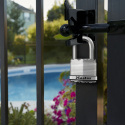 - Visací zámok s šírkou 64 mm s telom z vrstvenej ocele spevnený titánom pre vyššiu odolnosť a spoľahlivosť.