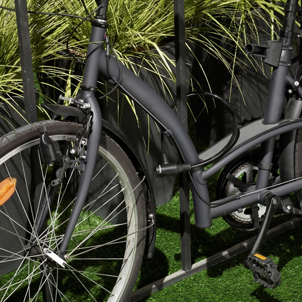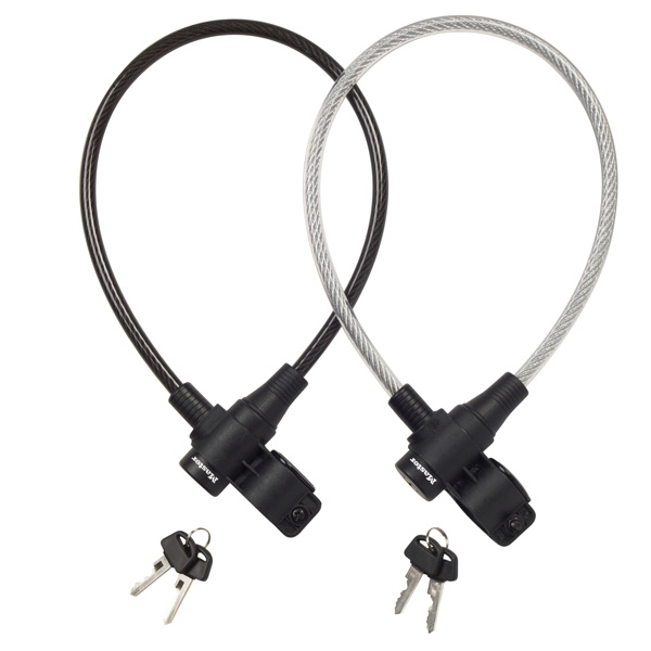 Oceľové krútené lanko na kľúč s dĺžkou 65cm a priemerom 8mm má vinylové poťah, ktorý zabraňuje škrabaniu. Obsahuje integrovaný zaisťovací mechanizmus s valcovým kľúčom, súčasťou balenia sú 2ks kľúčov a montážna konzola pre jednoduchú prepravu.