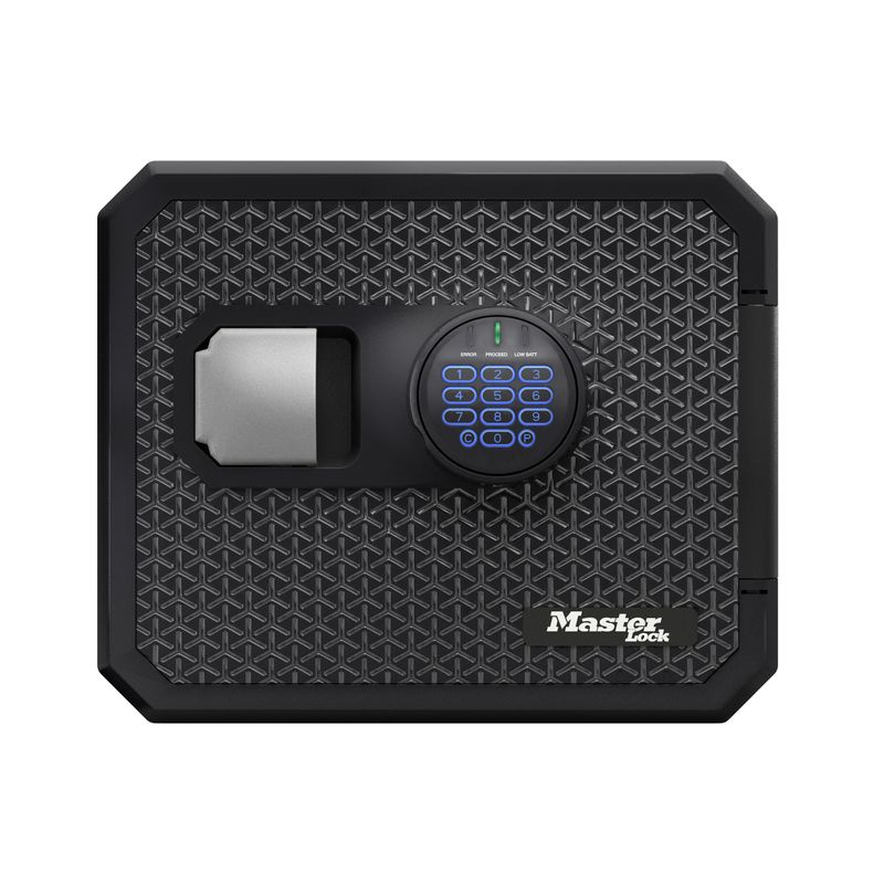 Ohnivzdorný a vodotesný bezpečnostný trezor Master Lock veľkosti L kombinuje to najlepšie zo skúseností spoločnosti Master Lock v oblasti zabezpečenia s odbornými znalosťami spoločnosti Sentry Safe v oblasti ochrany proti požiaru a povodniam. Chráni najcennejšie predmety - šperky, peniaze, elektroniku, papierové dokumenty (formát A4), média a ďalšie rodinné pamiatky - pred krádežou, požiarom a povodňami. Vďaka 3 veľkým automatickým oceľovým závorám (o 60 % širším než u trezoru verage), pántom odolným proti roztrhnutiu a elektronickému motorizovanému zámku je vysoko odolný voči útoku. Jeho špeciálna patentovaná konštrukcia zaručuje 1-hodinovú ochranu proti požiaru a 24-hodinovú ochranu pred zaplavením.