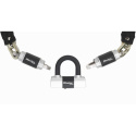 Akčné ponuky na váš e-mailReťaz z kalenej ocele s okami s štvorcovým Profilom o O 10 mm má trmen z kalenej ocele s osmiuholníkovým Profilom o O 16 mm. Nylonové potiahnutie reťaze zabraňuje poškrabaniu laku. Obsahuje diskovú cylindrickú vložku so 7 stavítkami odolnou voči vyrážaniu a dvojitú západku odolnú voči vypáčeniu. Krytka kľúčovej dírky navyše zabraňuje vniknutiu nečistôt. Hmotnosť reťaze je 2,74 kg.