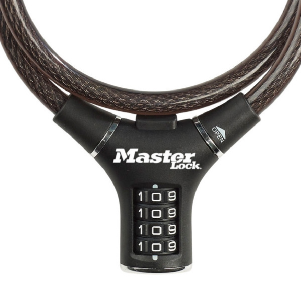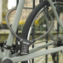 Akčné ponuky na váš e-mailOceľové lanko s priemerom 12mm a dĺžkou 0,9m má ergonomický tvar. Jeho vinylový povrch zabraňuje poškriabaniu. Obsahuje integrovaný nastaviteľný 4-ciferný kombinačný zámok.