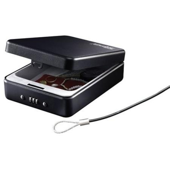 Uzamykateľný cestovný box na cennosti P005CEURBLKHRO je vhodný na uloženie kľúčov, hotovosti, dokladov, šperkov alebo drobnej elektroniky. Box má pevnú oceľovú konštrukciu.