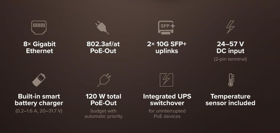 Kompaktní PoE switch s integrovanou UPS a inteligentní nabíječkou baterií – garance bezvýpadkového pprečítajte si viac