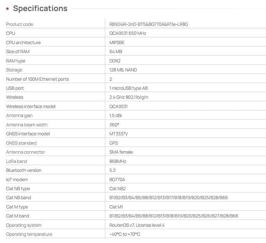 Popis MikroTik RB924iR-2nD-BT5&BG770A&R11e-LR8G IoT Gateway KNOT LR8G kit