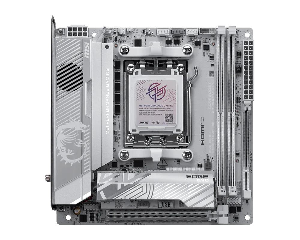 Akčné ponuky na váš e-mailMPG X870I EDGE TI EVO WIFI is covered with a silver-white color scheme for white PC build lovers to show off different identity. It is also powerful because of its true Wi-Fi 7 solution, 5G LAN, USB4, and the latest PCIe 5.0 compatibility, and this is the best white theme X870 ITX motherboard for AMD Ryzen™ 9000 series processors.