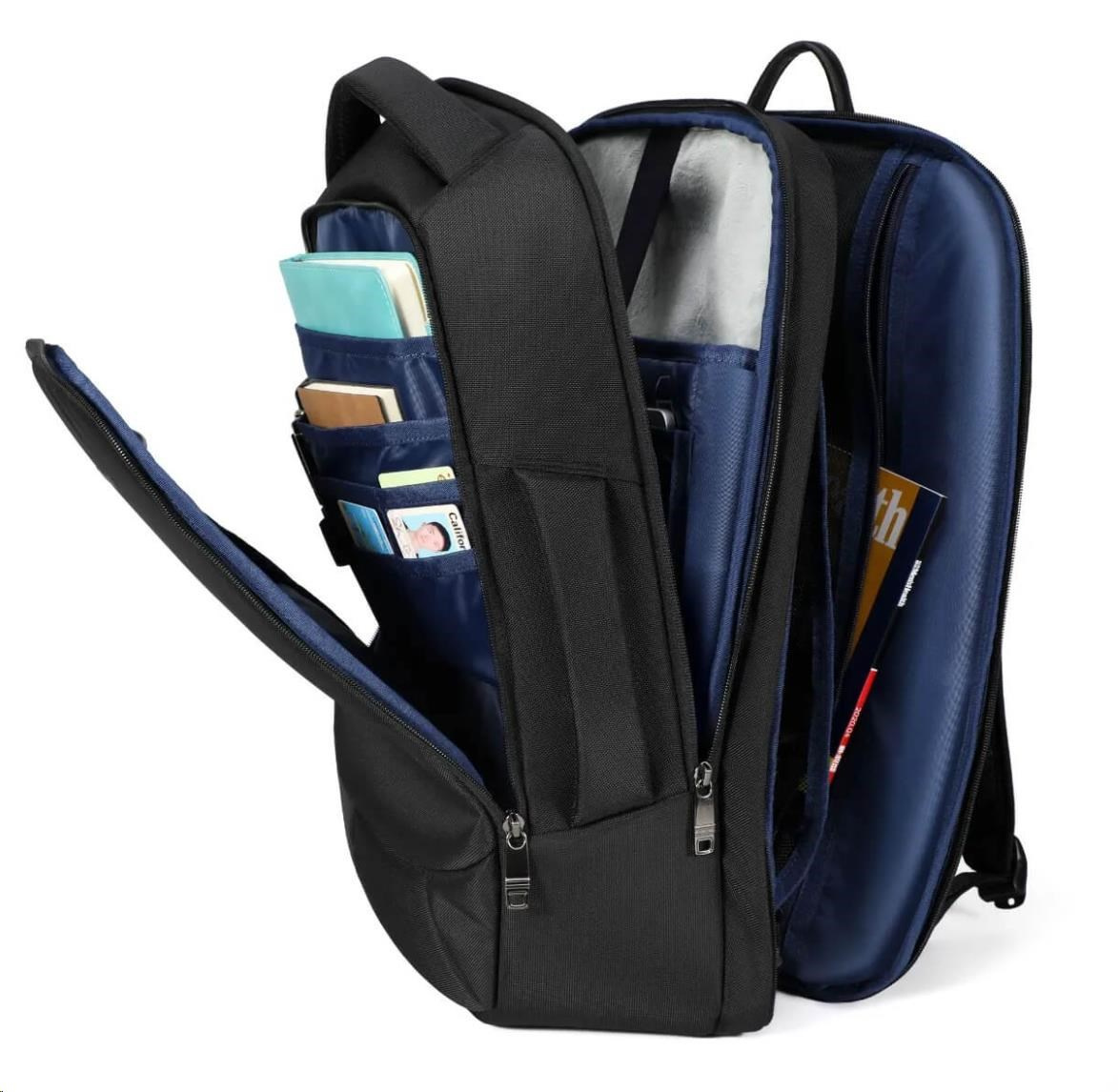 MYBALO ASTON Perfektní volba pro minimalisty s dobrým vkusem 6 ikon: - Nejtenčí batoh - Elegantní - Kapsa na notebook do 15,6" - Kapsa na tablet do 9" - Otevírání o 180 stupňů - USB a USB-C port - Drží tvar - Voděodolný - Skryté kapsy Elegantní a minimalistický Jedná se o velmi elegantní a minimalistický batoh. S tímto parťákem neuděláte chybu při běžném nošení do města, ani na důležité schůzce. Tenký batoh MYBALO Aston je batoh s vůbec nejmenší hloubkou z naší nabídky. Díky tomu působí elegantně a minimalisticky, ale i přesto se do něj vejdou všechny vaše nezbytnosti. Kvalitní voděodolný materiál, dlouhá životnost Kvalitní umělá kůže zajišťuje trvanlivost a odolnost batohu proti vodě a opotřebení. MYBALO Aston tak bude vaším společníkem opravdu dlouho. Drží tvar Batoh si zachovává svůj tvar také v případě, že jej budete mít úplně prázdný. Vestavěný USB a USB-C port Nabíjejte svá elektronická zařízení kdekoli a kdykoli díky vestavěnému USB a USB-C portu. Popruh k uchycení na kufr Cestujte pohodlně. Kdykoli chcete mít volná záda, jednoduše připevněte batoh na rukojeť svého kufru. Pohodlné polstrování Užijte si komfortní nošení díky kvalitnímu a prodyšnému polstrování ramenních popruhů a zádové části. Další praktické kapsy Zorganizujte si pohodlně a snadno své věci díky množství vychytaných kapes. Skryté kapsy V zádové části a na ramenním popruhu najdete skryté kapsy pro bezpečné uložení cenností. Vnitřní kapsy Vnitřní kapsy slouží pro snadnou organizaci všech vašich věcí. Přední kapsa Přední kapsa je určena pro věci, které chcete mít rychle a snadno po ruce. Parametry: - Rozměry: 46 x 30 x 9 cm - Objem: 11 l - Hmotnost: 1,19 kg - Kapsa na notebook: Ano (do vel. 15,6") - Kapsa na tablet: Ano (do vel. 9") - USB port: Ano - Voděodolnost: Ano - Hlavní materiál: Ekokůže + Polyester - Podšívka: Polyester - Barva: Černá