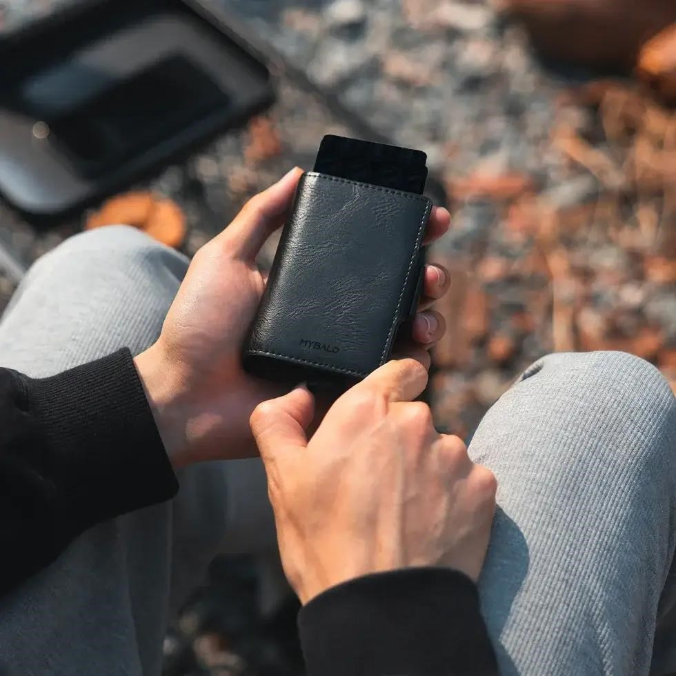 MYBALO Oslo je elegantná minimalistická peňaženka z vysoko odolnej PU kože, ktorá zaujme sofistikovaným vzhľadom doplneným o precízne sedlové ručné prešívanie. Vďaka praktickému mechanizmu stačí ľahko posunúť páčku a až desať kariet sa elegantne vysunie do prehľadného vrstveného usporiadania, v ktorom ľahko nájdete tú pravú. Integrované hliníkové puzdro navyše spoľahlivo chráni vaše karty pred nechceným skenovaním vďaka technológii RFID/NFC blokácie. Peňaženka je určená celkom na až 14 kariet: 10 v hliníkovom puzdre a ďalšie 4 v pridavných priečkach. Nechýba ani priestor na bankovky či drobnú hotovosť. Dodáva sa v elegantnom darčekovom balení, takže je skvelou voľbou nielen pre vás, ale aj ako štýlový darček pre niekoho blízkeho.