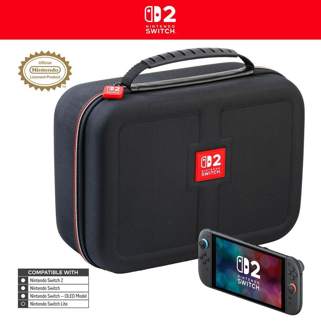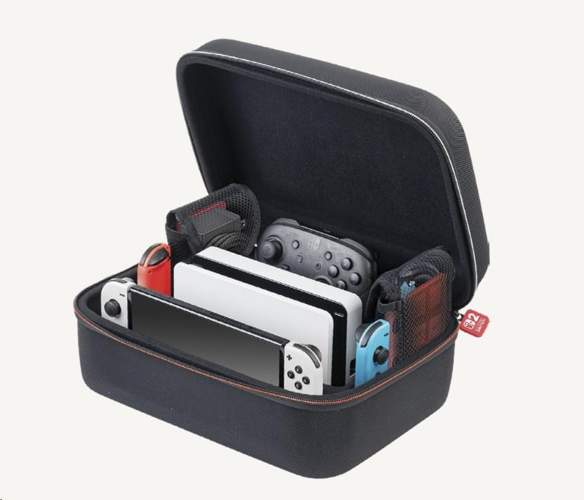 • Luxusná cestovná taška na uloženie hernej konzoly Nintendo Switch 2 vrátane všetkého príslušenstva. Kompatibilná tiež s konzolami Switch a Switch – OLED Model, vrátane ich príslušenstva.