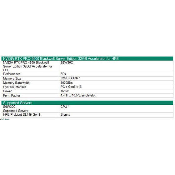 NVIDIA RTX PRO 4500 Blackwell Server Edition 32GB PCIe Accelerator for HPE