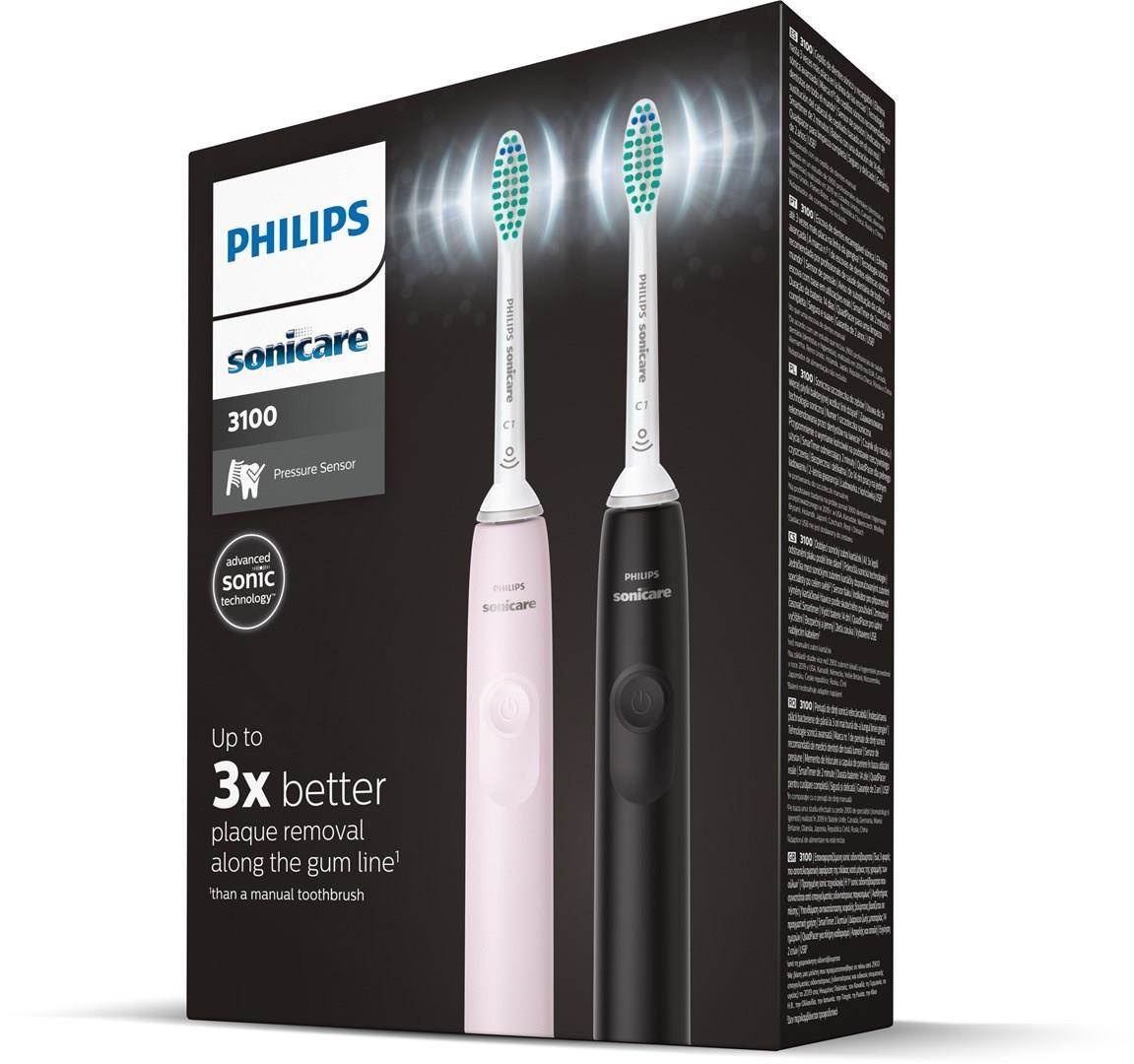 Příliš velký tlak vyvíjený kartáčkovou hlavicí na zuby a dásně může způsobovat řadu zdravotních problémů, a přitom není vůbec jednoduché ho rozpoznat. Sonický elektrický kartáček nové generace Philips Sonicare 3100 je proto vybavený citlivým senzorem, který vás dokáže na nesprávný tlak upozornit. Pokud je třeba tlak zmírnit, rukojeť kartáčku zavibruje. 7 z 10 lidí uvádí, že jim tato funkce pomohla čistit si zuby lépe.