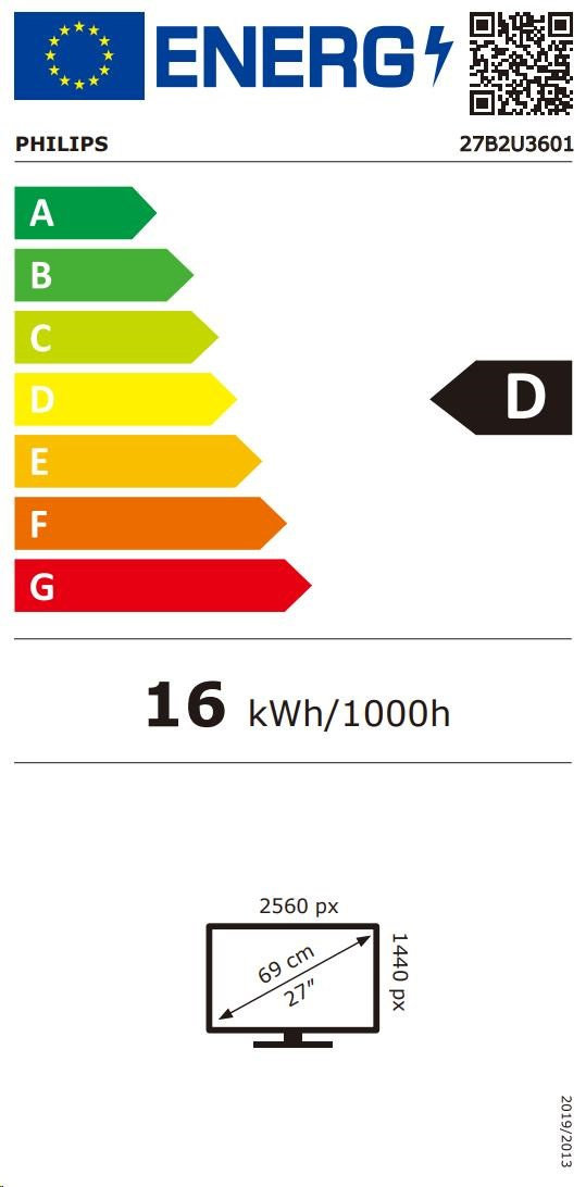Popis Philips MT 27" 27B2U3601 - 2560x1440,IPS,120Hz,HDMI,DP,USBhub,USB-C,RJ45,Repro,Pivot