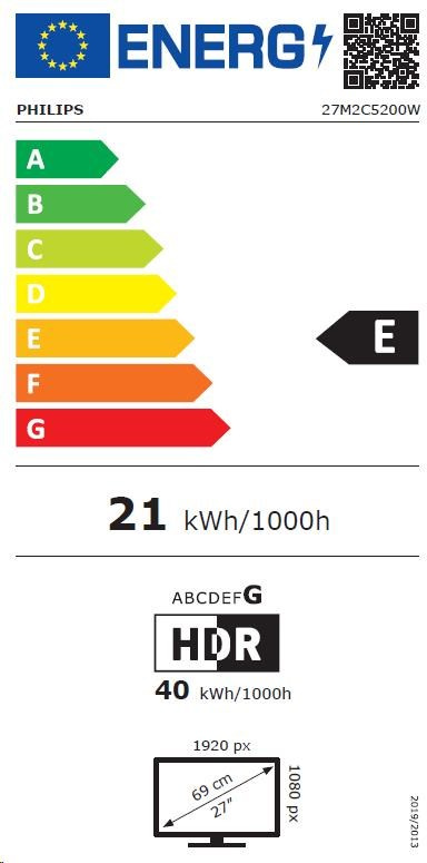 Popis Philips MT 27" 27M2C5200W/00 - 1920x1080,VA,280Hz,HDR10,2xHDMI,1xDP,Zakřivený,Pivot