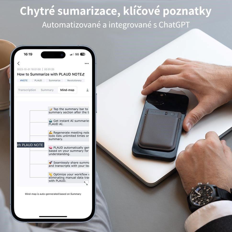 Akčné ponuky na váš e-mailPlaud Note je AI hlasový záznamník, ktorý vám s pomocou ChatGPT nástrojov podstatne uľahčí život. Záznamník má minimalistický dizajn ocenený cenou Red Dot za výnimočný dizajn a minimalistické sú aj jeho rozmery – je veľký ako platobná karta. Záznamník podporuje 57 jazykov vrátane češtiny a slovenčiny. Plaud Note ponúka duálny režim nahrávania, a to pre diktovanie poznámok a druhý pre nahrávanie hovorov. Vďaka vstavanému 64GB úložisku môžete na Plaud Note nahrať až 480 hodín záznamu a jeho energetická nenáročnosť zabezpečí 30 hodín kontinuálneho záznamu a 60 dní pohotovostného režimu. Absolútne výnimočné je u osobných záznamníkov prepojenie Plaud Note s ChatGPT. Vďaka aplikácii Plaud môžete nechať nadiktované záznamy prepísať, vytvoriť z nich zhrnutia, a dokonca nechať AI vytvoriť, dnes veľmi populárne, myšlienkové mapy. V cene produktu je navyše zahrnuté cloudové úložisko pre 10.000 minút záznamu. Služba PLAUD AI Membership má dve varianty. Starter a Pro. Starter ponúka takmer všetky funkcie, obsahuje 300 minút transkripcie záznamu a je zdarma. Verzia Pro poskytuje 1200 minút prepisu, rozšírený výber šablón, a navyše prioritu pri prístupe k pripravovaným funkciám, ako je napríklad rozpoznanie osoby alebo prekladač. Aktuálna cena služby Pro je 249 Kč mesačne* pri mesačnom platbe, alebo 1990 Kč ročne*. Ďalšie neplatené funkcie, ktoré robia spoluprácu s Plaud Note jedinečnou, je AI processing, zabezpečujúci elimináciu ruchu na pozadí. Funkciu je možné aktivovať aj dodatočne, po vytvorení záznamu, a dá sa nastaviť v troch intenzitách pre každú príležitosť. Poznámky tak môžete v pokoji diktovať aj na rušnej ulici a výsledkom bude len váš, izolovaný hlas. Záznamník sa ovláda fyzickým tlačidlom s haptickou odozvou a fyzickým prepínačom režimov. Záznam začína aj končí jediným stlačením tlačidla, tak jednoduché to je. (*cena predplatného aktuálna k 20.5.2024)