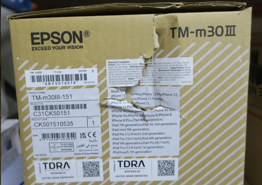 receipt printer, direct thermal, 8 dots/mm (203 dpi), variable paper width (58/80 mm), print width (max.): 72 mm, roll diameter (max.): 83mm, speed (max.): 300 mm/s, USB (type B), USB-C, Bluetooth, Ethernet, Wi-Fi, Micro SD-Slot, cutter, incl.: power supply unit, power cable, white