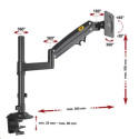 Stolný držiak na monitor Fiber Mounts H100B Stolný držiak na monitory 17-35", plne polohovateľný 3D Špičkový stolný držiak s uchytením na okraj stola alebo kamkoľvek do priestoru. VESA štandard 75x75 a 100x100 na uchytenie monitorov s uhlopriečkou 17-35". Držiak umožňuje plnú nastaviteľnosť polohy monitora: otáčanie do strán, duálne výškové polohovanie, naklápanie, vzdialenosť od uchytenia a rotáciu monitora. Rameno držiaku je osadené plynovým piestom s nastaviteľnou tuhosťou 2-12kg, výškové polohovanie je teda extrémne jednoduché a pohodlné. Farebné prevedenie čierne, záruka 3 roky. Držiak na monitor uchytenie na okraj stola alebo do priestoru, otočný, sklopný, výškové polohovanie, výsuvný - Fiber Mounts H100B Technické údaje: zaťaženie: minimálne 2kg, maximálne 12kg na monitory s uhlopriečkou 17" až 35" VESA štandardy 75x75 a 100x100 duálne výškové polohovanie (ramenom s piestom 250mm + objímkou na nosníku 300mm) celkové nastavenie výšky od stola 0-550mm otáčanie do strán +360° / -360° náklon +85° / -30° rotácia obrazovky - na šírku alebo na výšku dva typy uchytení na stolovú dosku (na okraj stola alebo do priestoru stolovej dosky) uchytenie na stolovú dosku o priemere 25-80mm systém pre usporiadanie káblov farebné prevedenie čierne záruka 3 roky