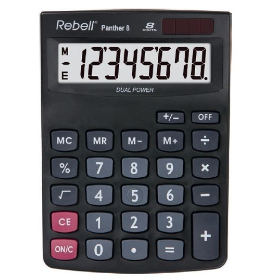 Charakteristika Displej 8 číslic Klávesy plastové Napájanie solárne & batériové Hmotnosť (g) 94 Rozmery (mm) 143 x 102 x 29 Funkcie Klávesy %, +/–, ?, OFF 4 pamäťové klávesy