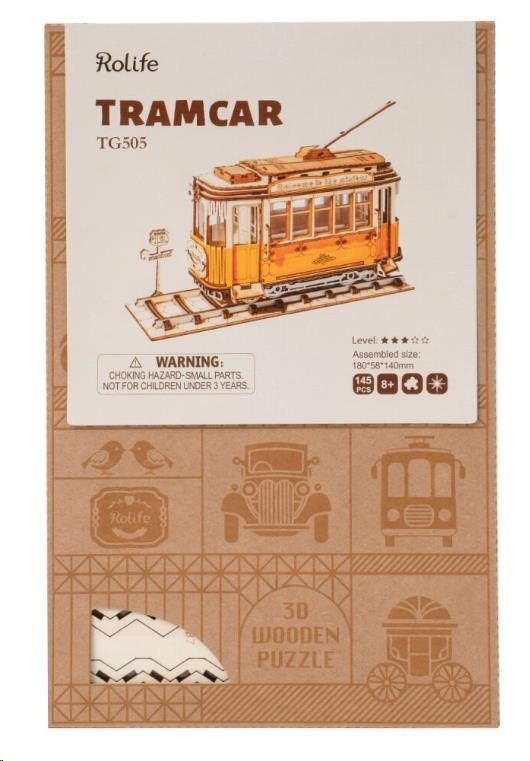 Popis RoboTime dřevěné 3D puzzle Historická tramvaj