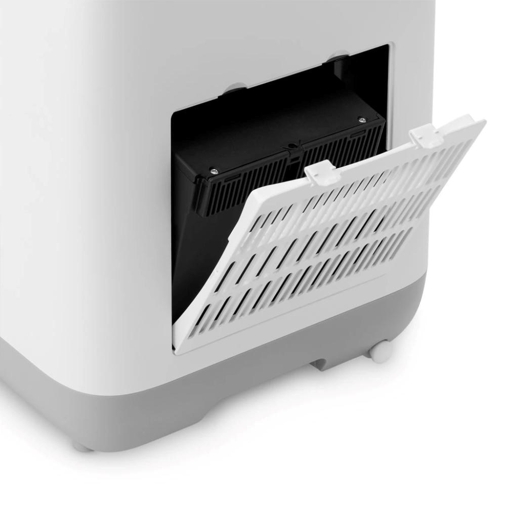 | Zápach nemá šanci Nepostradatelnou součástkou elektrického kompostéru je i protipachový filtr s aktivním uhlím (s životností 300 hodin provozu), který chrání vaši kuchyň před jakýmkoliv nepříjemným zápachem. Právě díky němu je možné mít kompostér nikoliv v koutu zahrady, ale přímo doma. Součástí filtračního systému je navíc i doplňkový omyvatelný molitanový předfiltr, který funguje jako první obranná linie a také prodlužuje životnost hlavního uhlíkového filtru. Když je čas filtr vyměnit, kompostér vás na to automaticky upozorní. |