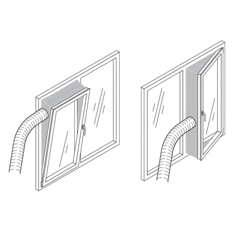 Odvodu teplého vzduchu z místnosti přes dodávanou flexibilní hadici a těsnění do okna