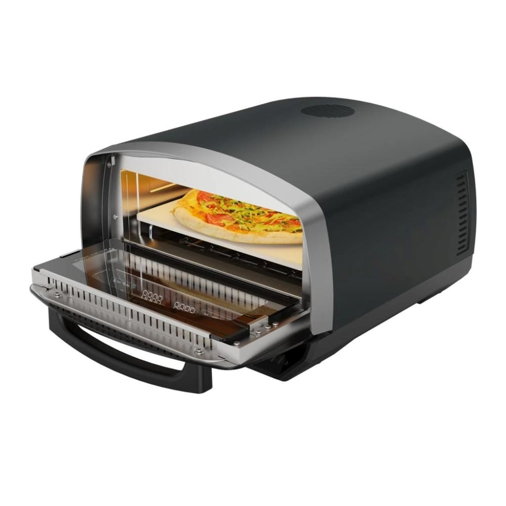 Pizza pec Salente Vulcano není jen mistr na pizzu – díky vestavěné funkci grilu ji využijete po celý rok na nespočet dalších způsobů. Nabízí režimy Broil, Roast, Bake a Grill, takže si snadno připravíte nejen dokonale propečenou pizzu, ale i šťavnaté maso, dozlatova zapečenou zeleninu, křupavé toasty nebo domácí pečivo.