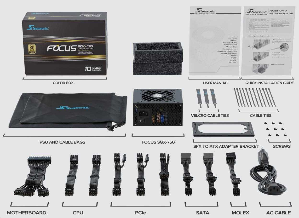 Akčné ponuky na váš e-mailThe new line of Seasonic's FOCUS SGX is versatile in its application and powerful with a small footprint. It is a standard SFX unit, measuring at 125 mm (L) x 100 mm (W) x 63.5 mm (H). The FOCUS SGX (2021) is shipped with an SFX to ATX adapter bracket in the box, which allows the power supply to be mounted not only in the SFX form factor chassis, but also a standard ATX chassis should the user prefers to reserve more space for airflow inside the PC case. The Seasonic hybrid fan control is always enabled to optimize the cooling according to necessity.