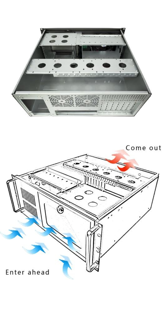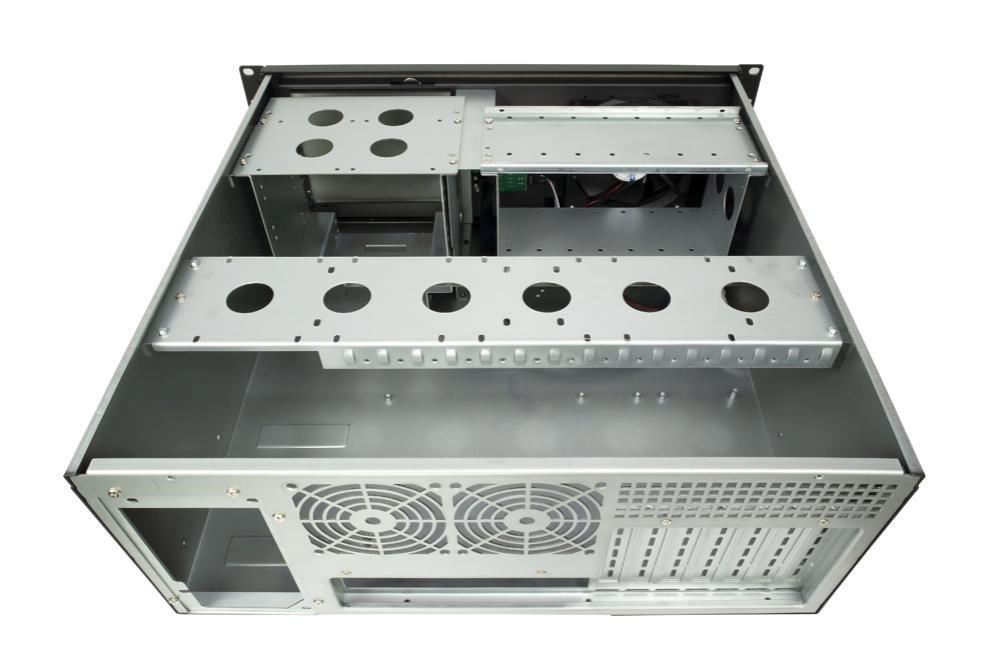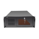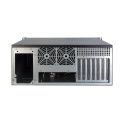 IPC 4U-450 je vysokokvalitná serverová skriňa určená na montáž do 19" racku. Skriňa je vyrobená z 1,2 mm hrubého plechu, ktorý sa v dnešnej dobe vyskytuje len zriedkavo. Predný panel je zakrytý uzamykateľnými kovovými výklopnými dvierkami. Keď je panel zatvorený, cez priehľadnú časť dvierok sú viditeľné len kontrolky LED. Po otvorení dverí sú k dispozícii ostatné ovládacie prvky.