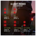 S Buster RL 80 máte na výber z piatich svetelných režimov, pomocou ktorých môžete individuálne nastaviť intenzitu osvetlenia a dobu výdrže batérie. V režime High dosahuje svetlo Buster RL 80 svetelný výkon 25 lumenov po dobu až 2 hodiny, v režime Low svieti až 7 hodín pri svietivosti 5 lumenov. Režim Day Flash dokáže pomocou dvoch červených blikajúcich LED upozorňovať na cyklistu po dobu 4,5 hodiny so svetelným výkonom 80 lumenov. V režime Night Flashing bliká zadné svetlo až 6,5 hodiny pri svetelnom výkone 15 lumenov. Ak jazda trvá dlhšie, dokáže zabezpečiť viditeľnosť v cestnej premávke režim Eco Flash až do 12 hodín.