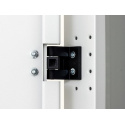 Vlastný systém pántov umožňuje otváranie dverí pod uhlom takmer 180°. Dvere je možné ľahko demontovať a prestaviť na otváranie na opačnú stranu.