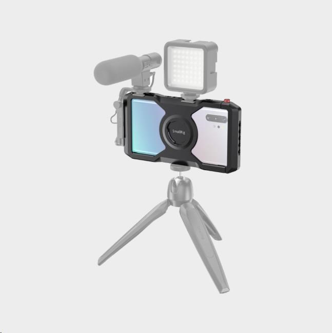 Akčné ponuky na váš e-mailSmallRig Samsung NOTE10+CAGE Professional Edition CPS2454 is designed to protect your samsung note10+, and provide access to attach other accessories for mobile photo & video shooting, live streaming, interviewing, vlogging, etc.It comes with two cold shoes and multiple 1/4”-20 threaded holes, allowing mount of different accessories like a microphone, LED light, tripod, etc., and supports both horizontal vertical shooting. It’s compatible with SmallRig Aluminum Side Handle for Smartphone Cage HSS2424 for handheld shooting, and SmallRig Mobile Phone Cable Clamp BSC2390 to secure the cable during shooting. The inbuilt rubber shims help absorb shocks and prevent the phone from scratching. The hollowed out design that reduces weight and heats off the mobile phone avoids the interface and antenna area, thus avoiding the risk of signal interference. It also comes with a lanyard hole for a wrist strap.Quick opening and closing structure can be quickly opened and closed cage.