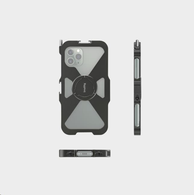 Akčné ponuky na váš e-mailSmallRig Pro Mobile cage for iPhone 11 Pro CPA2471 is designed to protect your iPhone 11 Pro, and provide access to attach other accessories for mobile photo & video shooting, live streaming, interviewing, vlogging, etc. It features a thumb screw on one side to ensure quick mounting and dismounting of the phone. It comes with two cold shoes and multiple 1/4”-20 threaded holes, allowing mount of different accessories like a microphone, LED light, tripod, etc., and supports both horizontal vertical shooting. It’s compatible with SmallRig Aluminum Side Handle for Smartphone Cage HSS2424 for handheld shooting, and SmallRig Mobile Phone Cable Clamp BSC2390 to secure the cable during shooting. The inbuilt rubber shims help absorb shocks and prevent the phone from scratching. The hollow-out design for weight loss and mobile phone cooling avoids the side buttons and the interface as well as the antenna area to avert the risk of signal interference. It also comes with a lanyard hole for a wrist strap.