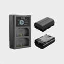 Dvojitá nabíjačka dokáže nabíjať dve batérie súčasne, pričom jej LCD displej zobrazuje stav nabíjania v reálnom čase.
