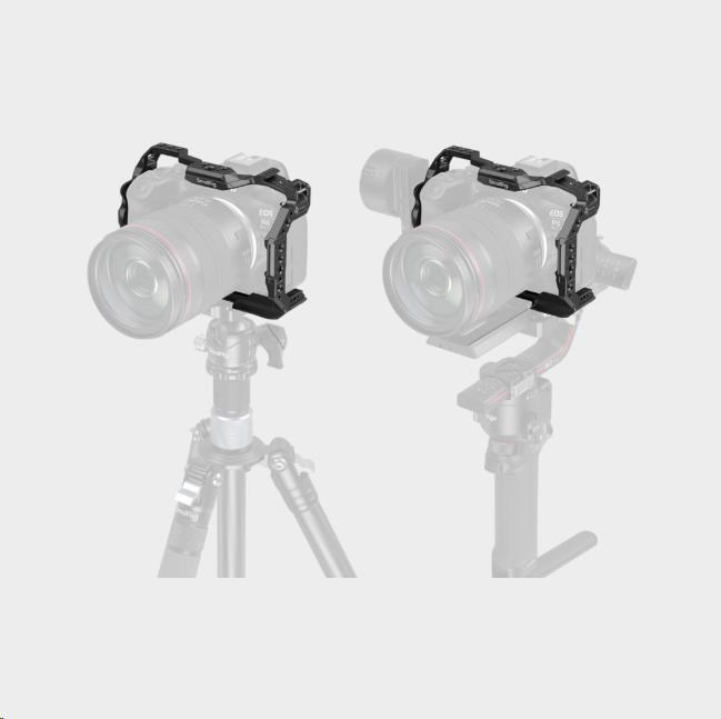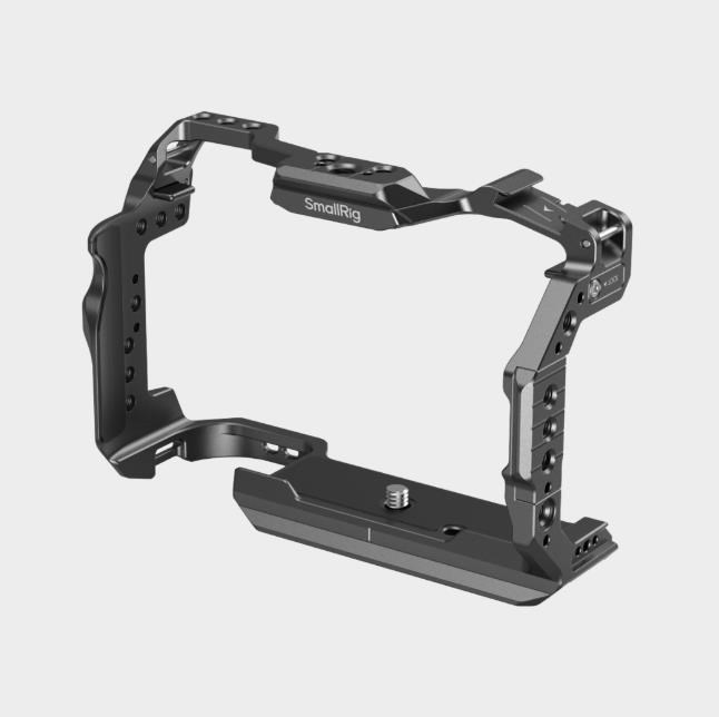 Klietka zachováva prístup k tlačidlám fotoaparátu, sramke karty, displeju a dvierkam batérie a je vybavená niekoľkými úchytmi pre príslušenstvo.