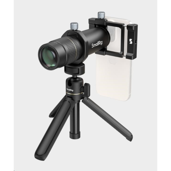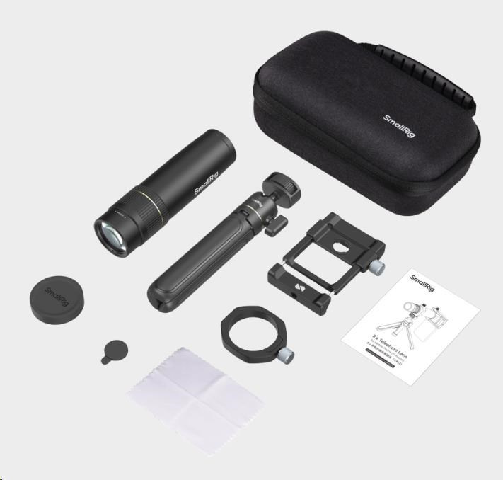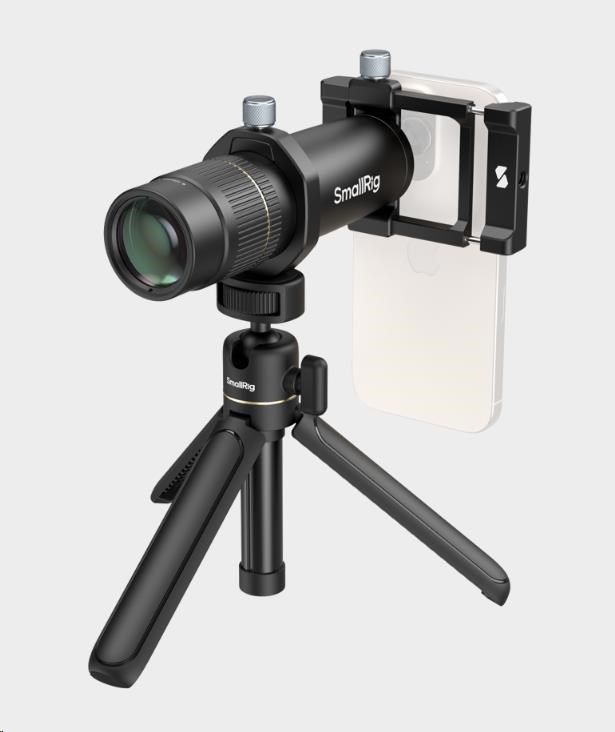 Bajonet T-mount umožňuje rychlou a efektivní instalaci, zatímco svorka objektivu se bezpečně připevňuje k chytrým telefonům pomocí mechanismu jediného dotyku.